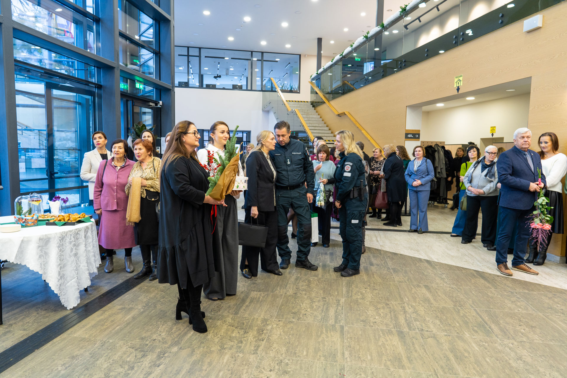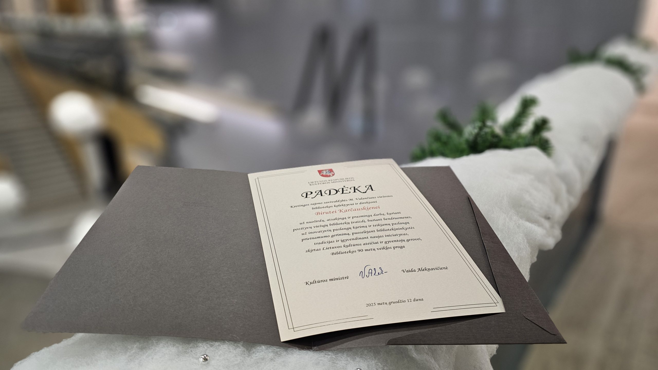 Kristina Kundrotienė kartu perdavė Lietuvos Respublikos kultūros ministerijos sveikinimą bibliotekos 90-mečio proga bei kultūros ministrės Vaidos Aleknavičienės pasirašytą padėką bibliotekos kolektyvui ir direktorei už nuoširdų ir prasmingą darbą stiprinant bibliotekų vaidmenį bendruomenėje, puoselėjant kultūrą ir tradicijas.