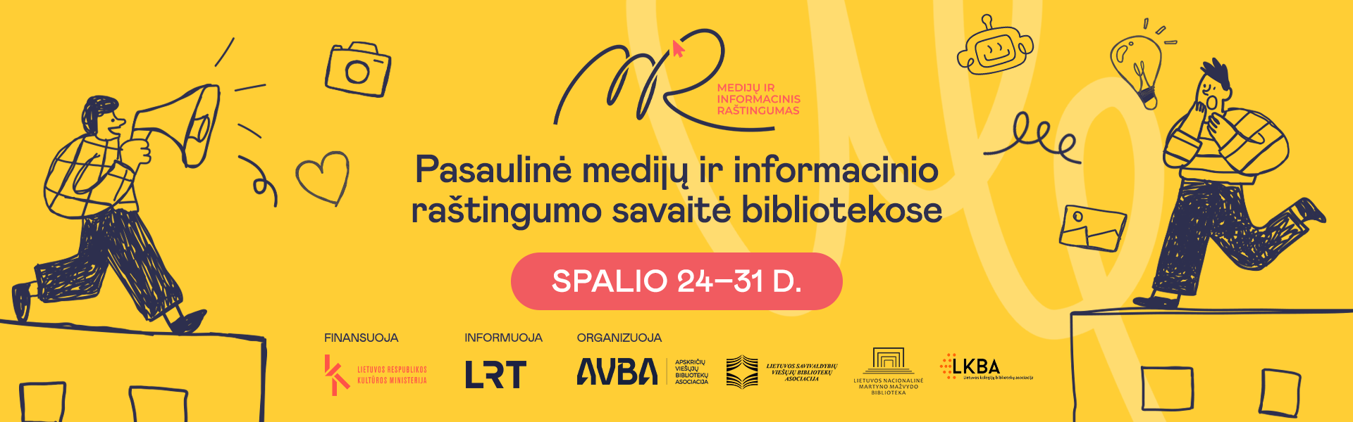 Jau ketvirtą kartą Lietuvos viešosios bibliotekos tampa Medijų ir informacinio raštingumo centrais, o šiemet spalio 24–31 d. visoje šalyje vyks paskaitos, diskusijos, žygiai, protmūšiai, žaidimai, pabėgimo kambariai ir konkursai!