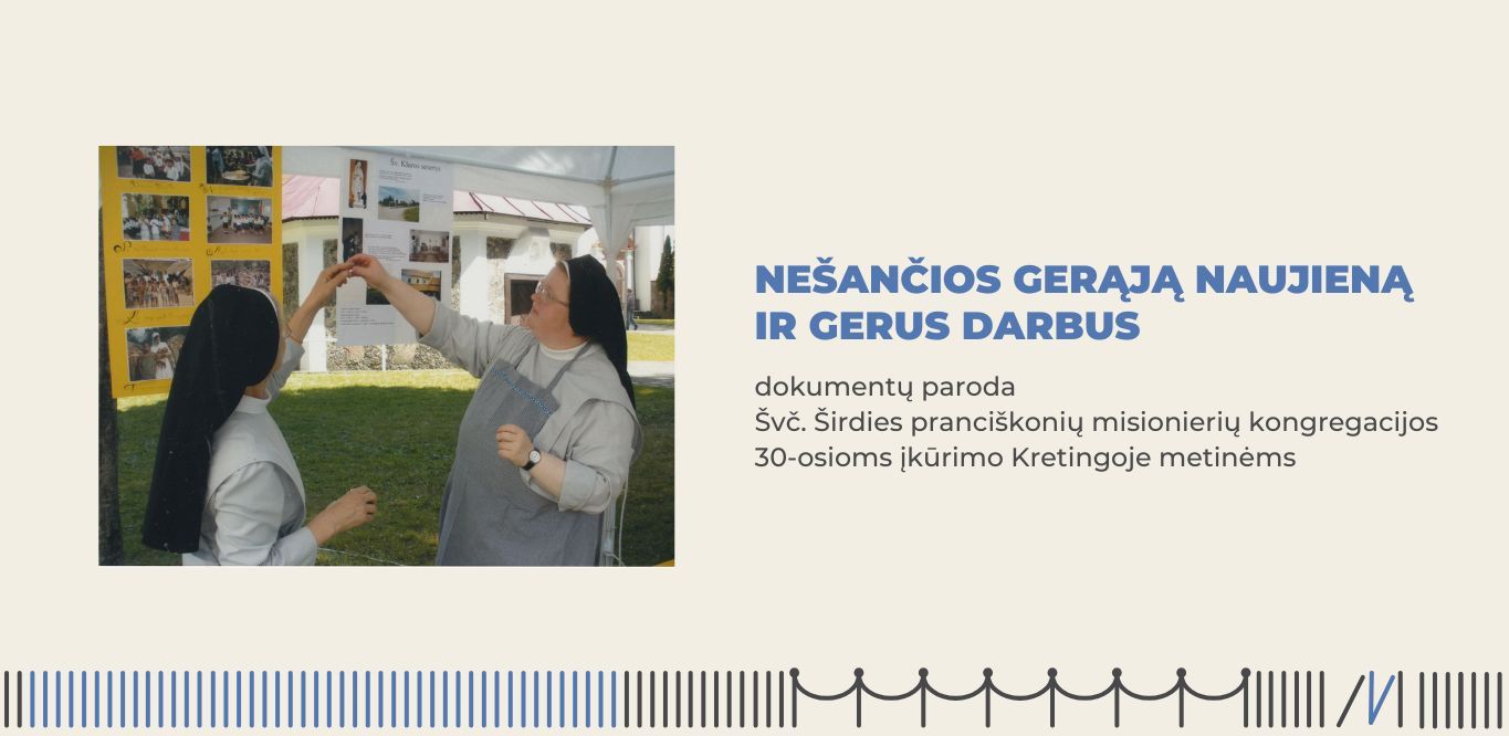 Dokumentų paroda „Nešančios Gerąją Naujieną ir gerus darbus“ Švč. Širdies pranciškonių misionierių kongregacijos 30-osioms įkūrimo Kretingoje metinėms.