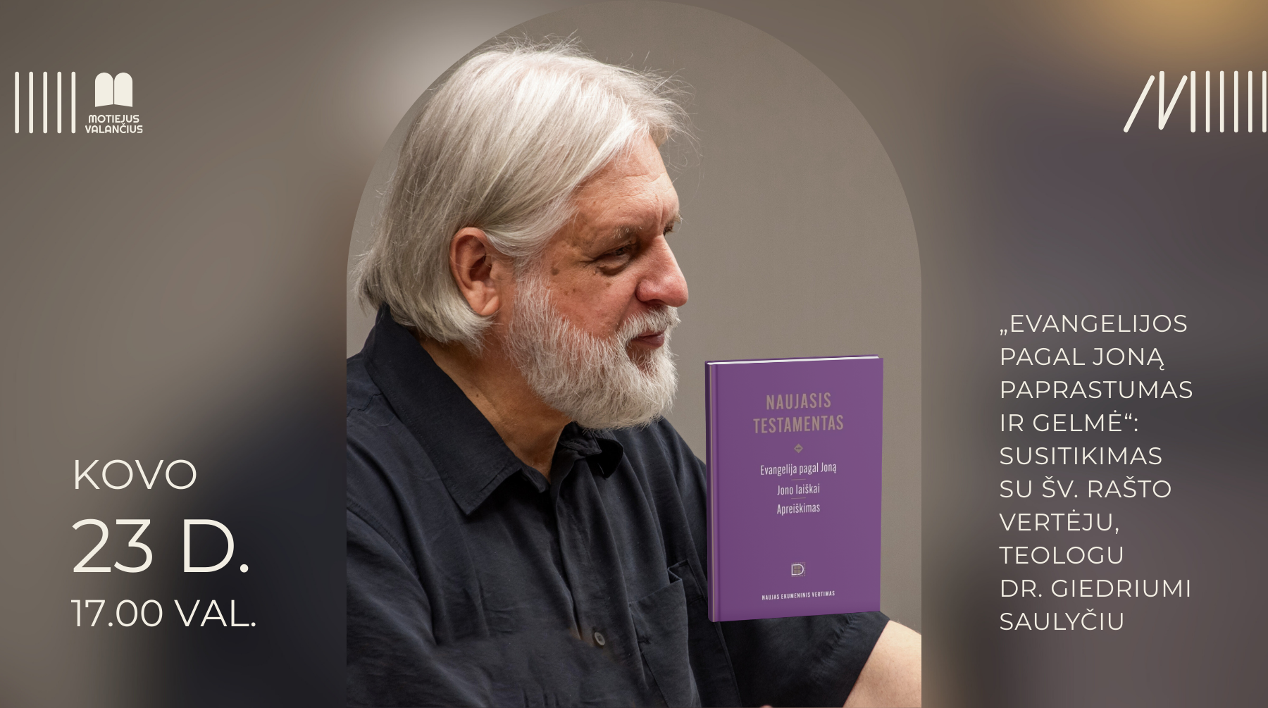 Kviečiame į susitikimą su dr. Giedriumi Saulyčiu, žinomu Šventojo Rašto vertėju ir teologu, turinčiu ilgametę patirtį biblinės literatūros tyrimuose ir ekumeninių projektų vertimuose.