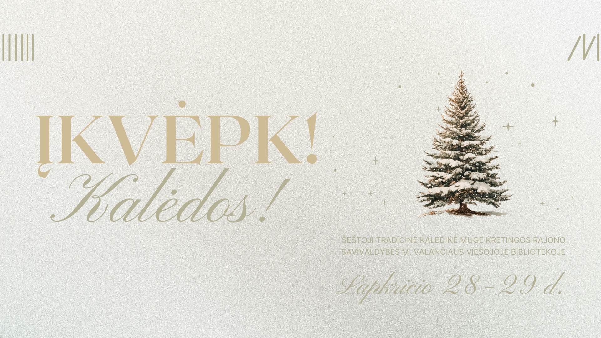 2025 m. lapkričio 28–29 d. Kretingos rajono savivaldybės M. Valančiaus viešojoje bibliotekoje vyks tradicinė kalėdinė mugė „Įkvėpk! Kalėdos!“