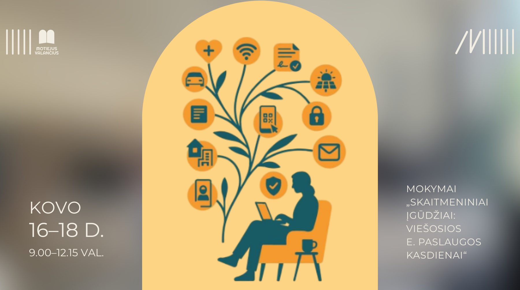 Norinčiuosius saugiai ir sumaniai kasdien naudotis skaitmeninėmis technologijomis, kviečiame registruotis į nemokamus mokymus pagal programą „Skaitmeniniai įgūdžiai: viešosios e. paslaugos kasdienai“.