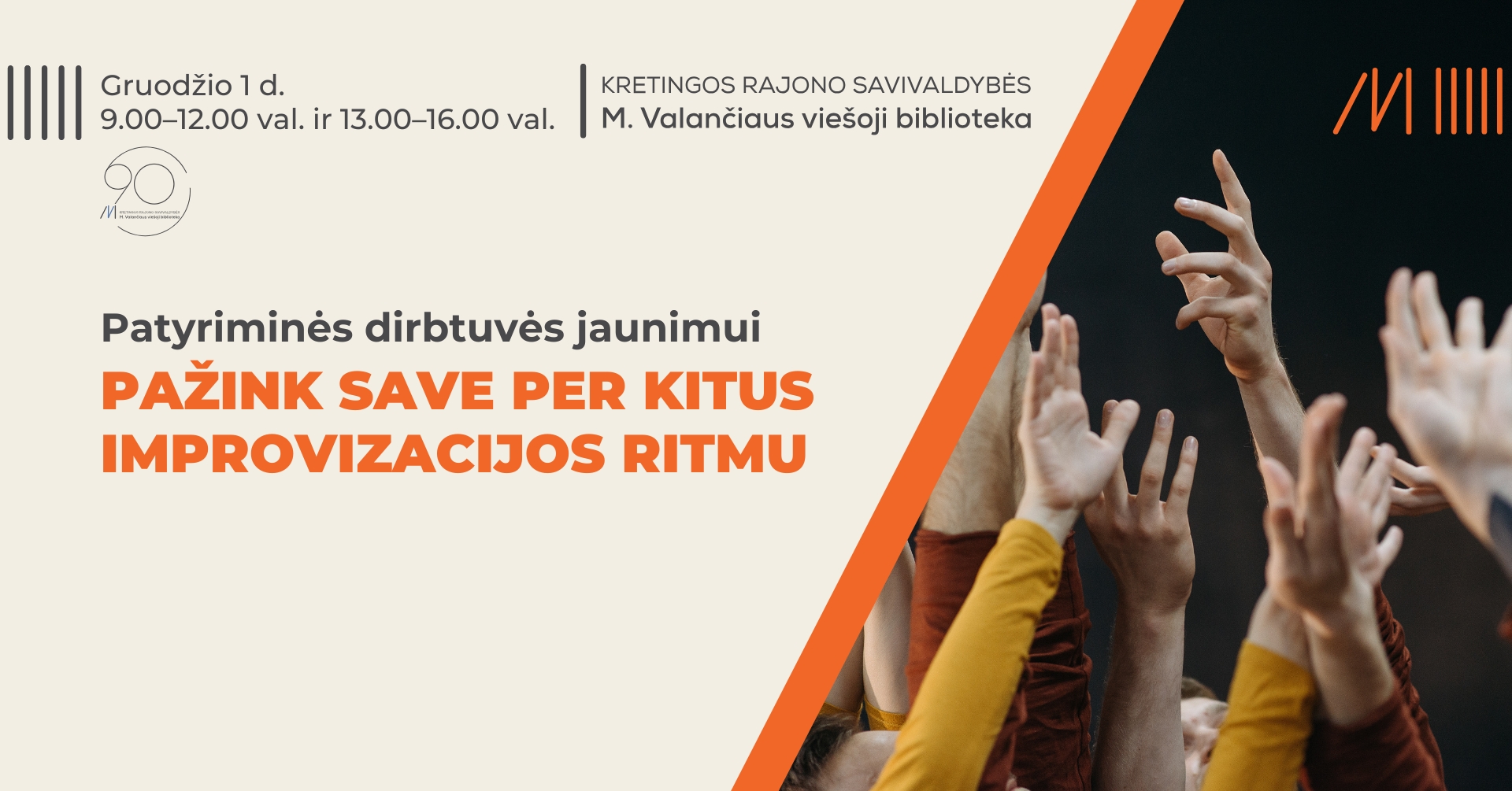 Kretingos jaunimą kviečiame į patyrimines dirbtuves „Pažink save per kitus improvizacijos ritmu“.