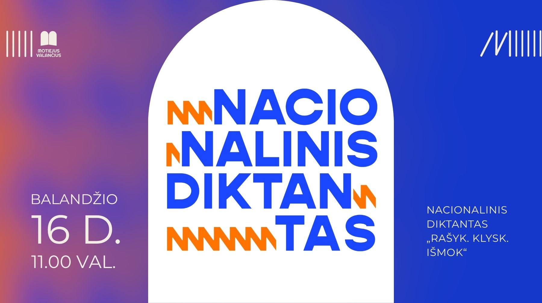 Jau 16-ą kartą vyksiantis Nacionalinis diktantas – tai tarptautinis konkursas, suburiantis suaugusiuosius ir moksleivius. Vieniems tai puiki galimybė pasitikrinti savo rašybos įgūdžius, kitiems – išbandyti jėgas varžantis, o visiems kartu – proga didžiuotis unikalia lietuvių kalba ir, net suklydus, atrasti ką nors naujo.