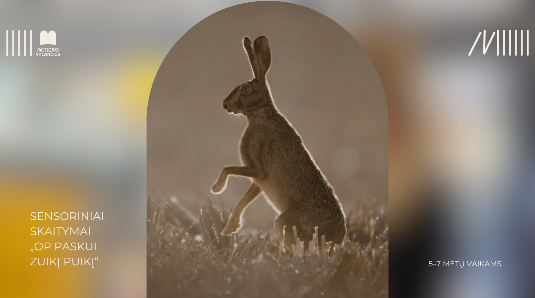 Kviečiame 5–7 metų vaikus į sensorinius skaitymus „Op paskui Zuikį Puikį“ ir patirti smagią, pojūčiais praturtintą pažintį su knyga.