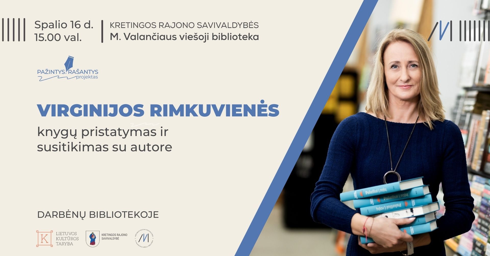 Kviečiame į jaukų susitikimą su rašytoja ir žurnaliste Virginija Rimkuviene – moterimi, drąsiai kalbančia apie gyvenimo pokyčius, tapatybės paieškas ir amžiaus grožį. Renginys vyks Kretingos rajono savivaldybės M. Valančiaus viešosios bibliotekos Darbėnų filiale (Laukžemės g. 1, Darbėnai, Kretingos r.).