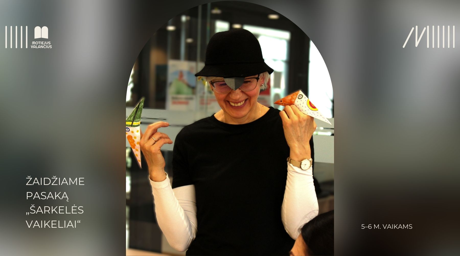 Pavasarį, kai visi paukščiai sugrįžta iš šiltų kraštų, į biblioteką atskridusi šarka seks vaikams pasakas iš Edith Schreiber-Wicke knygos „Kai varnos dar margos buvo“, žais ir išdykaus kartu su jais.